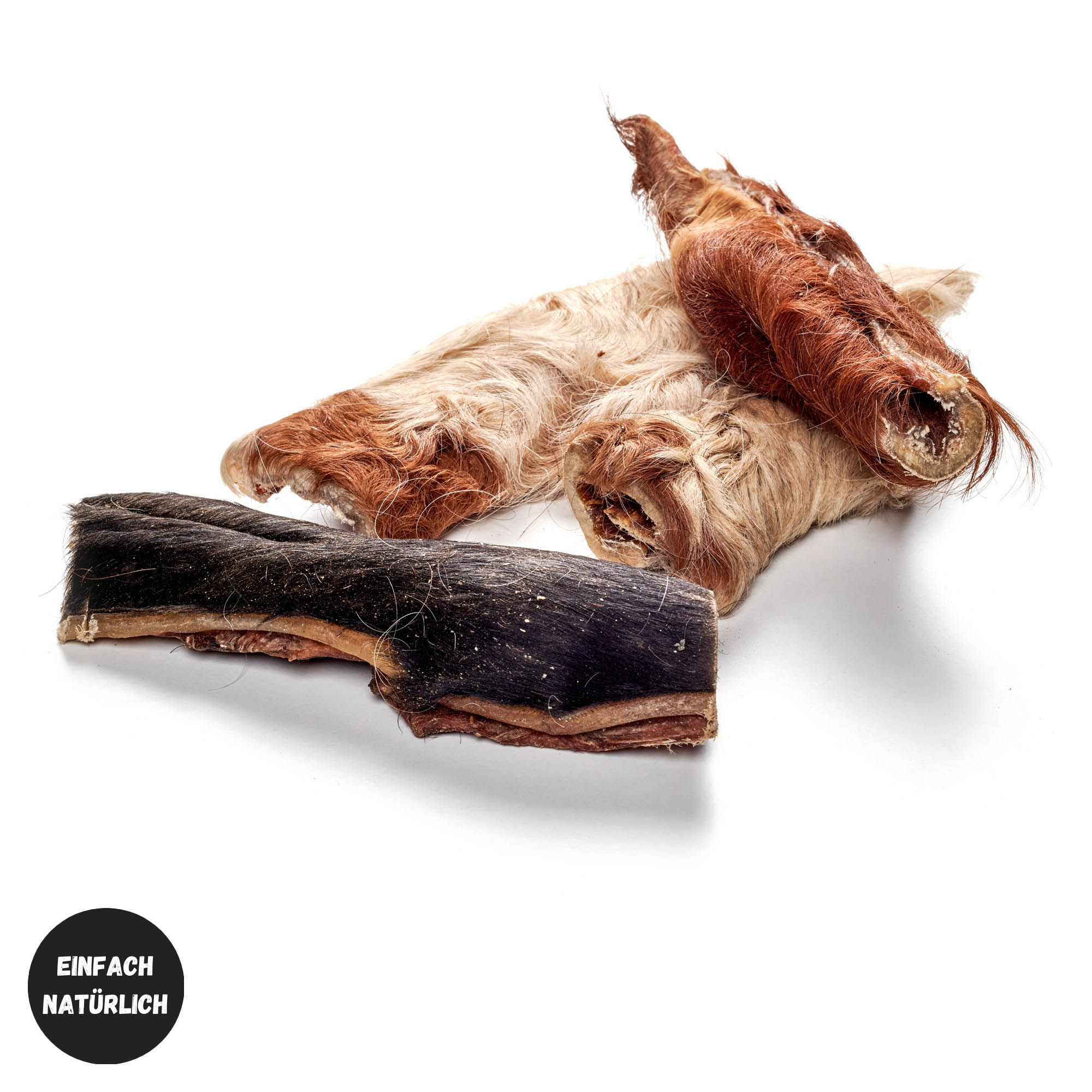 Herstellung: Getrocknete Kopfhaut vom Rind mit Fell