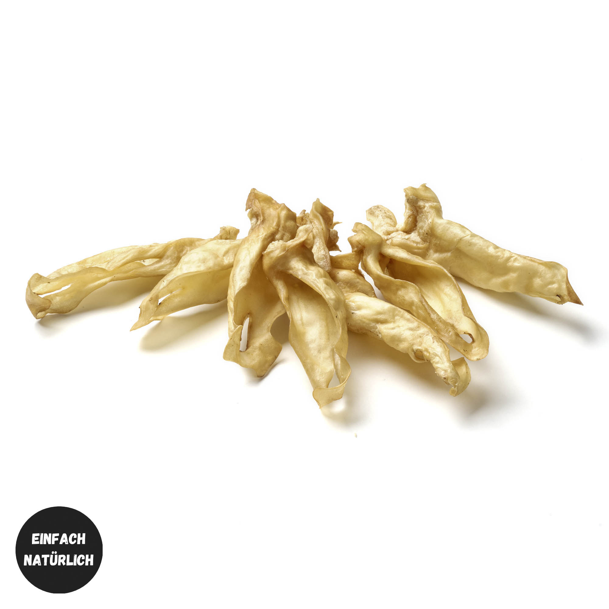 Das wohlschmeckende Knorpelgewebe der Ohren trägt dazu bei, dass Gebiss und Kaumuskulatur gekräftigt werden. Sie sind eine ideale Nahrungsergänzung zur Kalzium- und Ballaststoffversorgung und sind darüber hinaus ein herrliches Kauvergnügen.