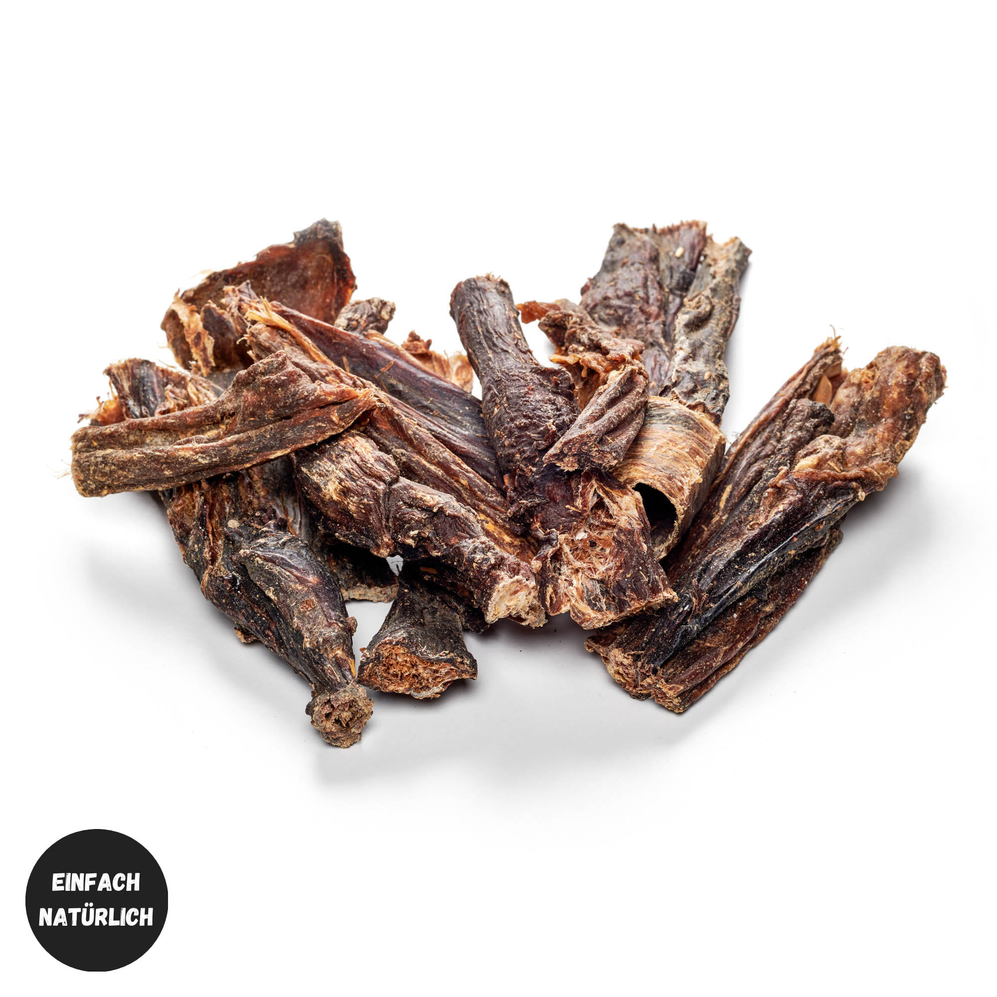Herstellung: Naturbelassene, getrocknete Fleischstreifen vom Wasserbüffel.