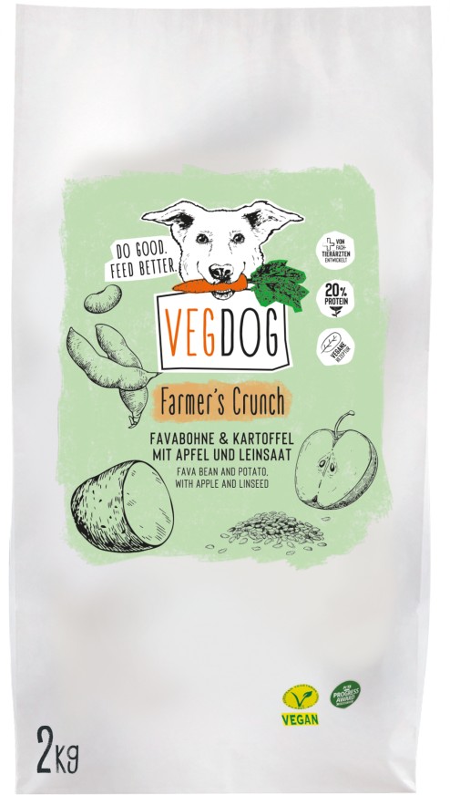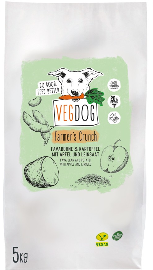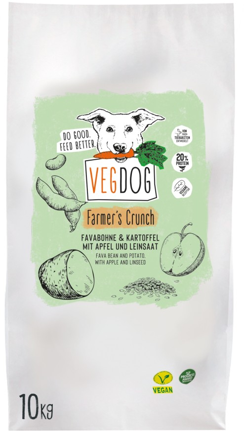 VEGDOG FARMER´S CRUNCH die vollwertige und besonders schmackhafte Alternative mit hochverdaulicher Rezeptur für ausgewachsene Hunde.